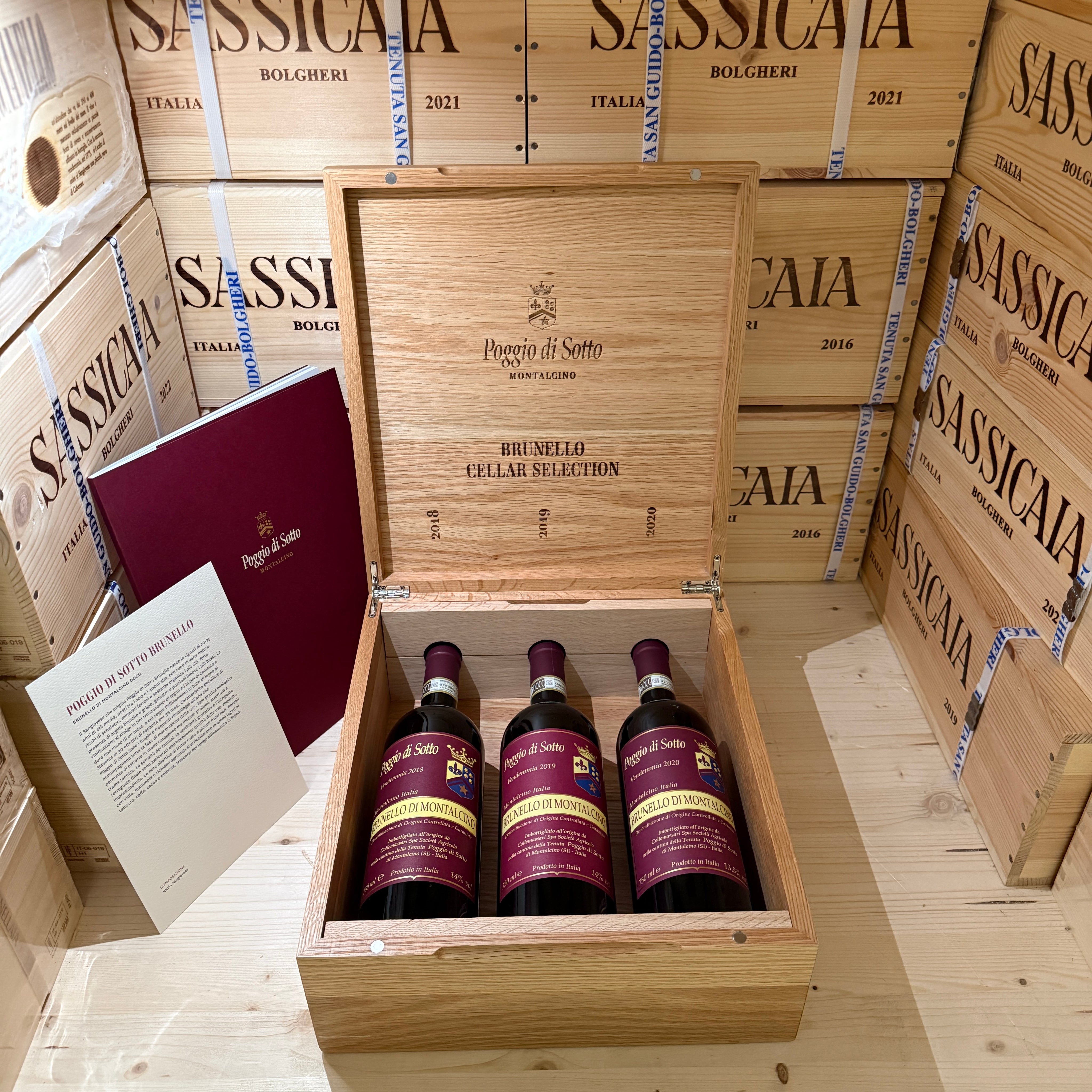 Poggio Di Sotto Brunello Cellar Selection 2018 - 2019 - 2020 - Cassa Legno 3 Bottiglie